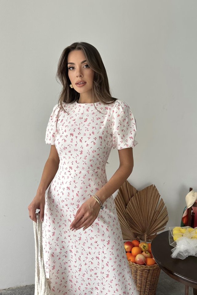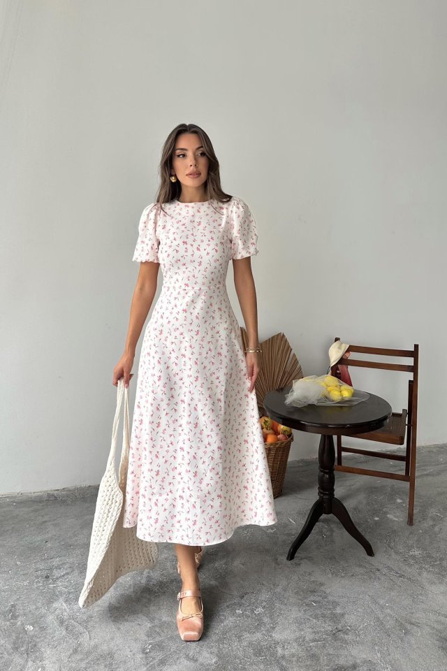 Pembe Dijital Baskılı Atlas Elbise