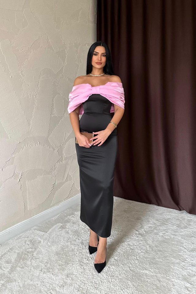 Pembe Önü Fiyonklu Elbise