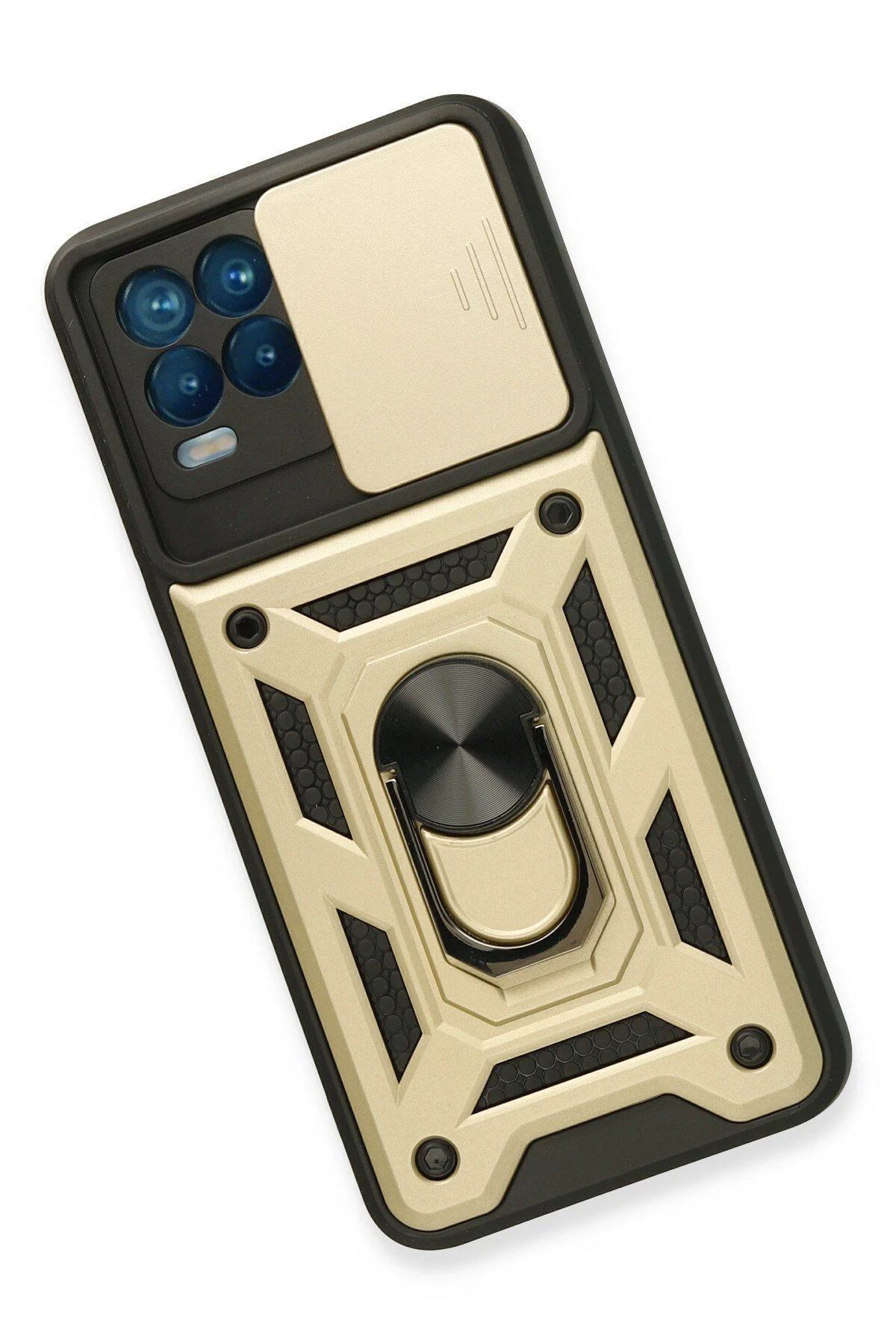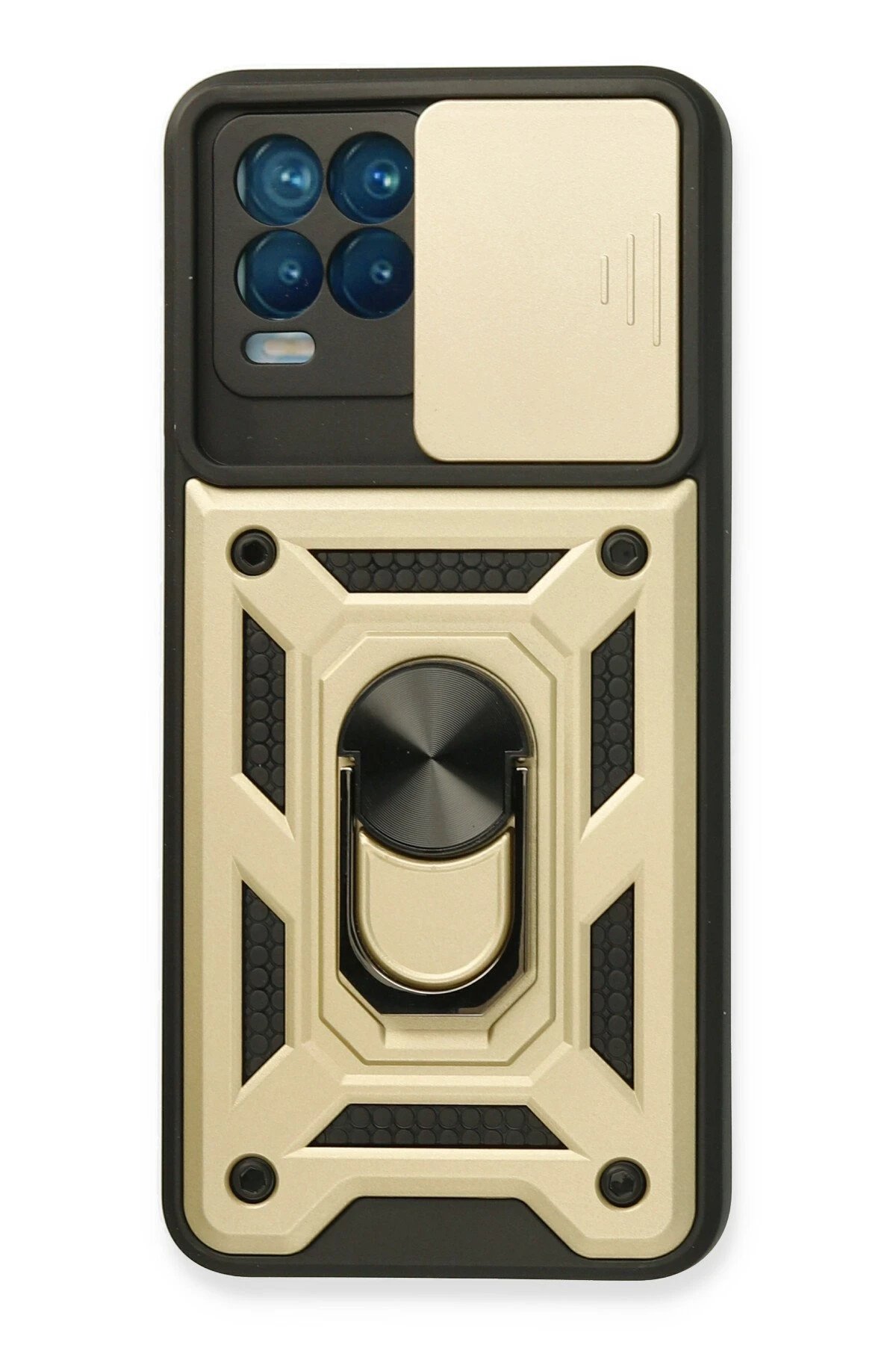 Realme 8 Kılıf Pars Lens Yüzüklü Silikon – Gold-(5796)