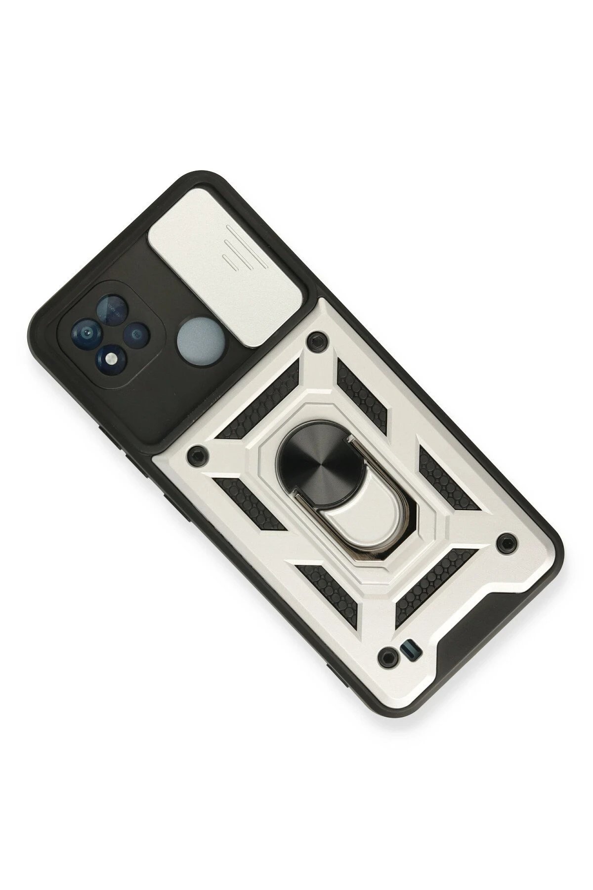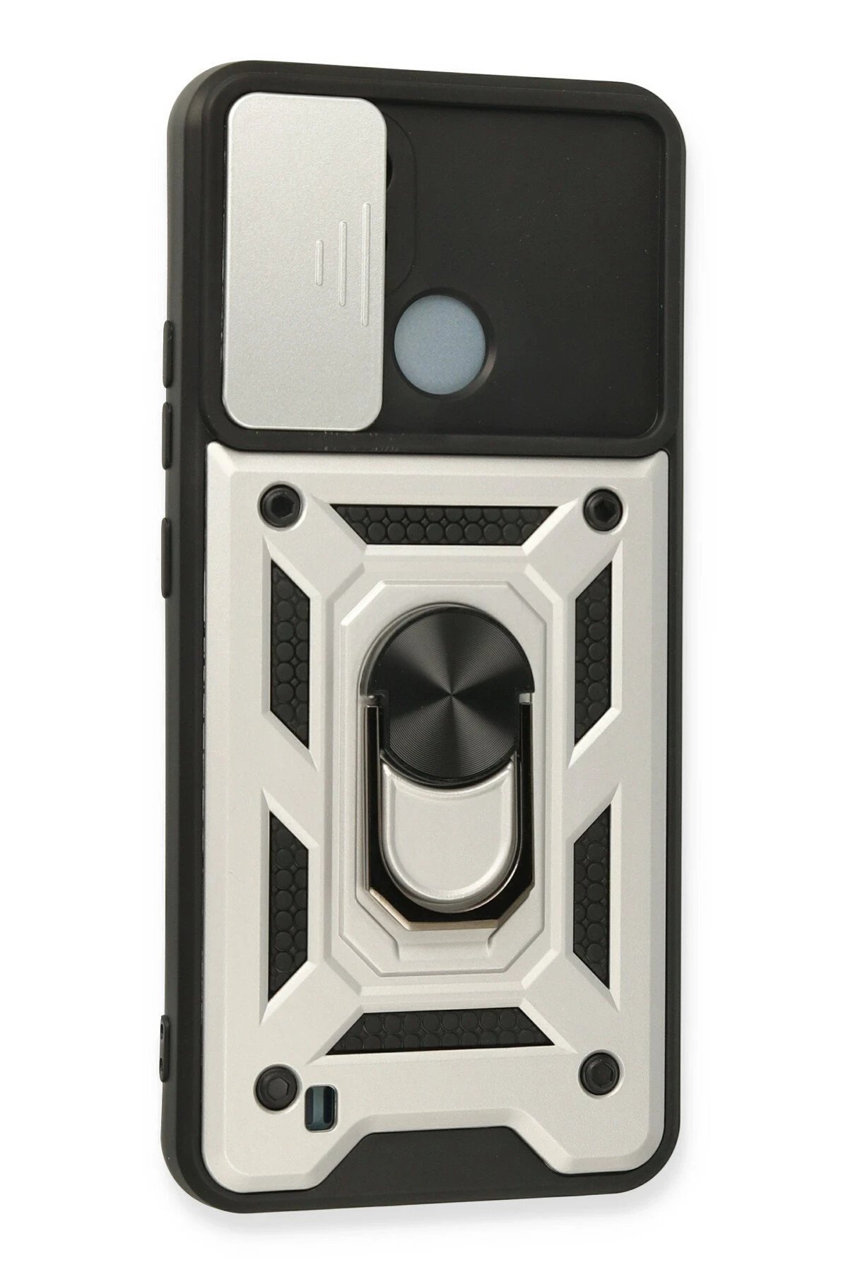 Realme C11 2021 Kılıf Pars Lens Yüzüklü Silikon – Gümüş-(5796)