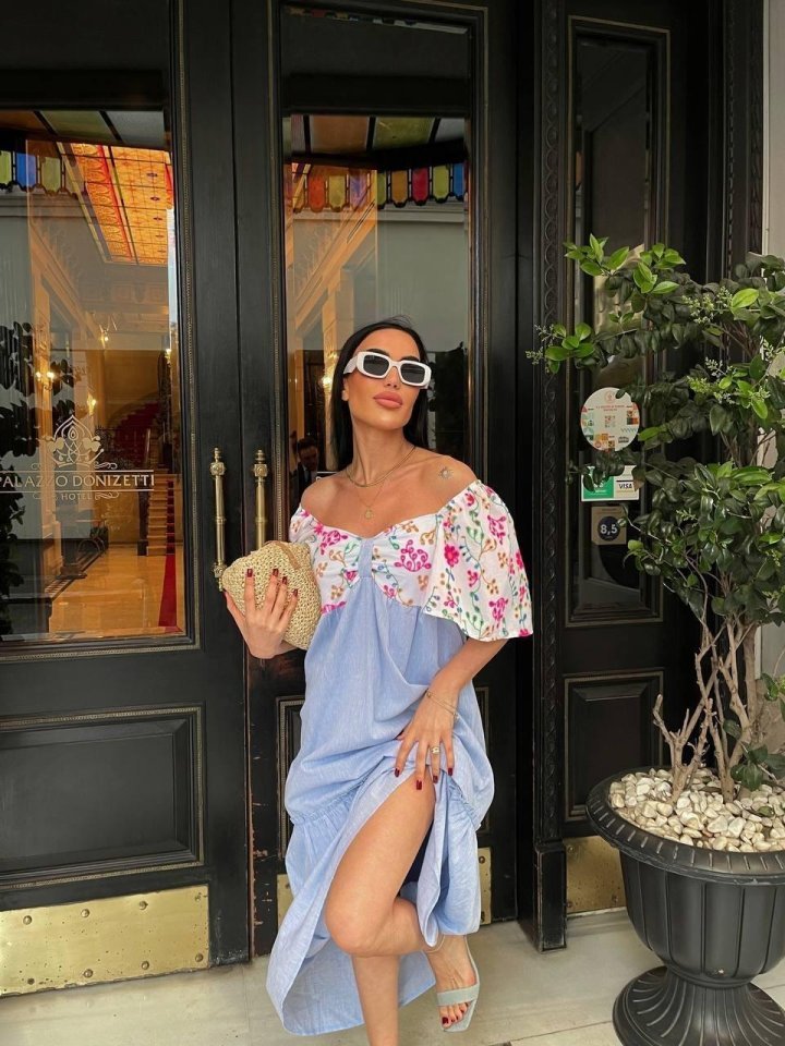 RENKLİ NAKIŞ DESENLİ ELBİSE – Mavi