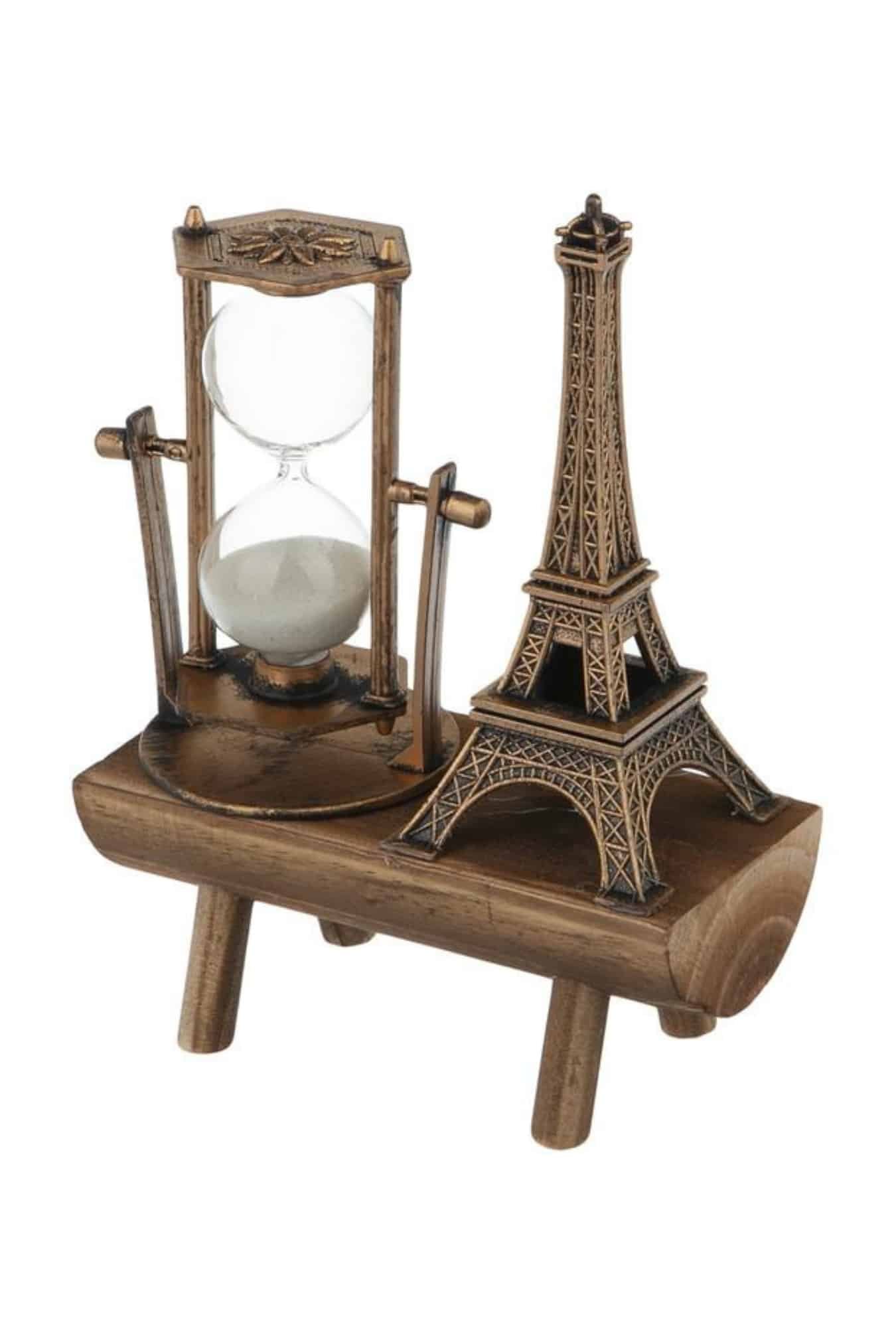 Retro Eyfel Kulesi Ve Kum Saati Dekoratif Ahşap Görünümlü Masa Biblosu