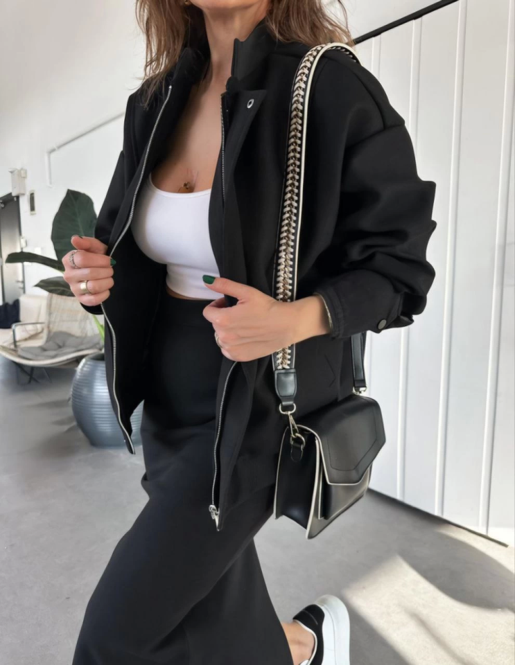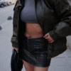RYSE Mevsim Kaşe Fermuarlı Ceket Etek Takım Kaşmir Ceket Etekli İkili Takım Kaşe Bomber Ceket-Etek Takım