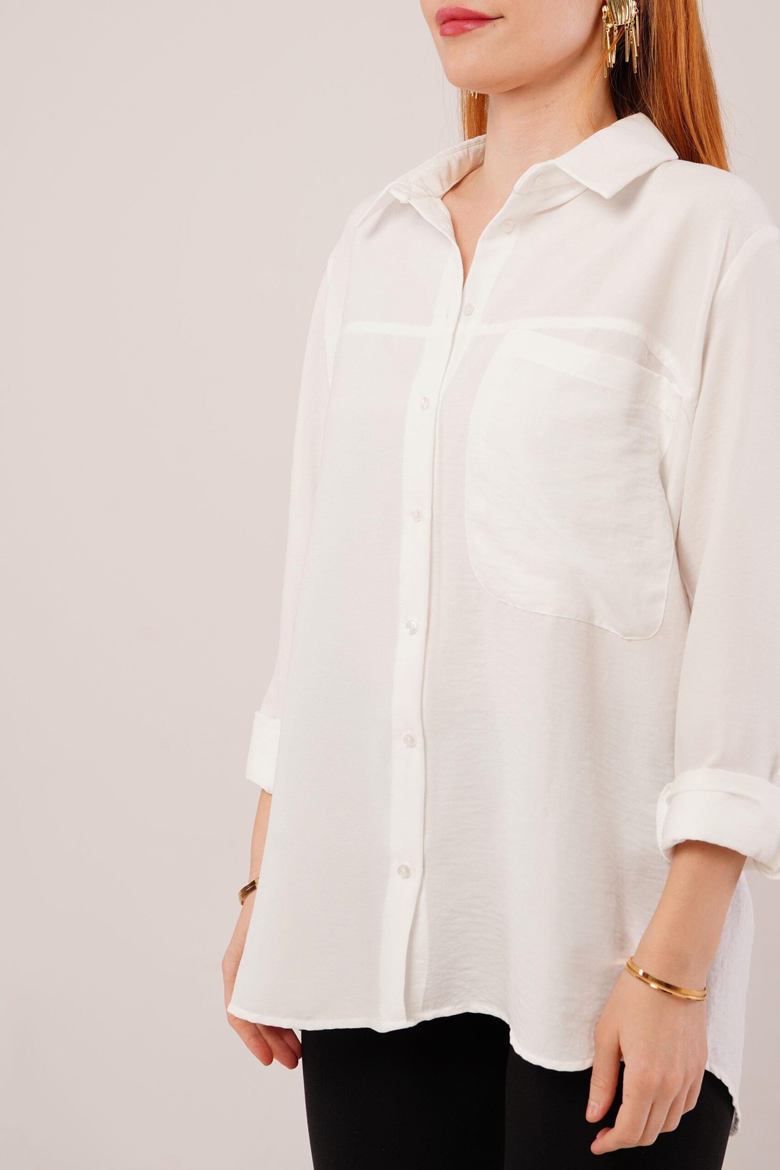 Salaş Kesim Cepli Beyaz Gömlek
