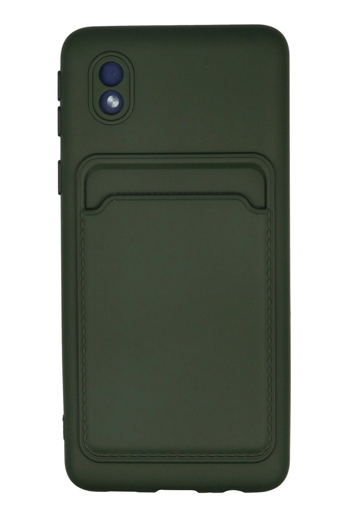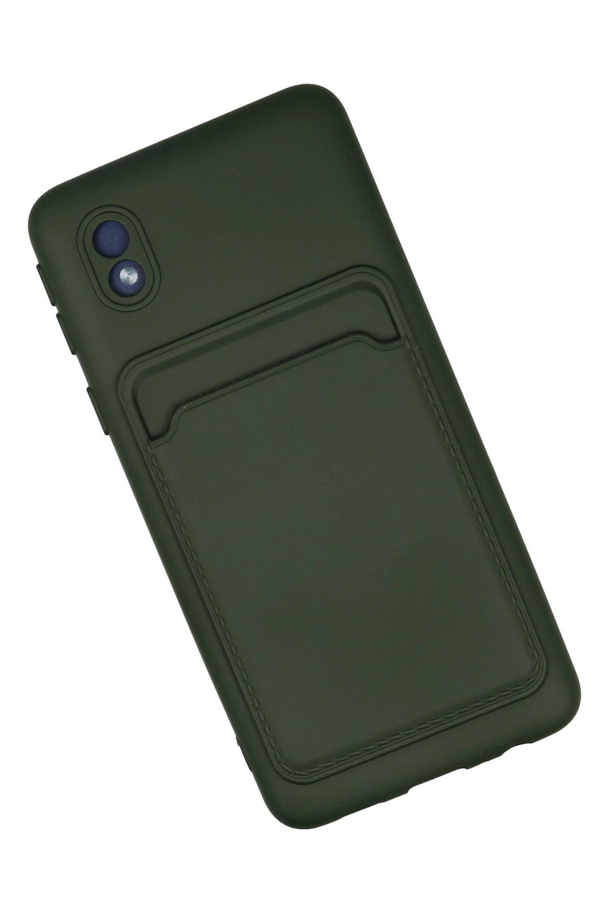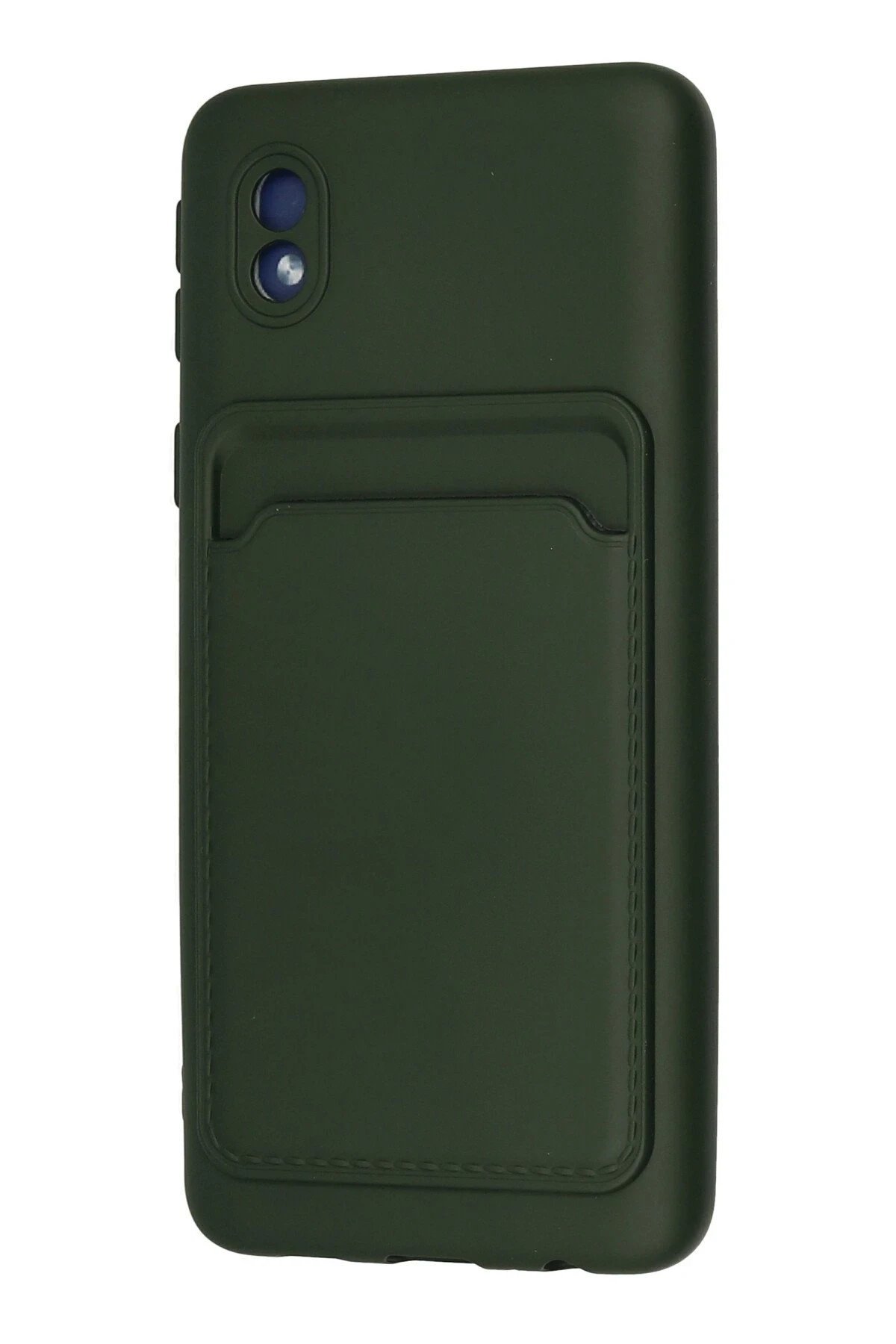 Samsung Galaxy A01 Core Kılıf Kelvin Kartvizitli Silikon - Koyu Yeşil-(5796)