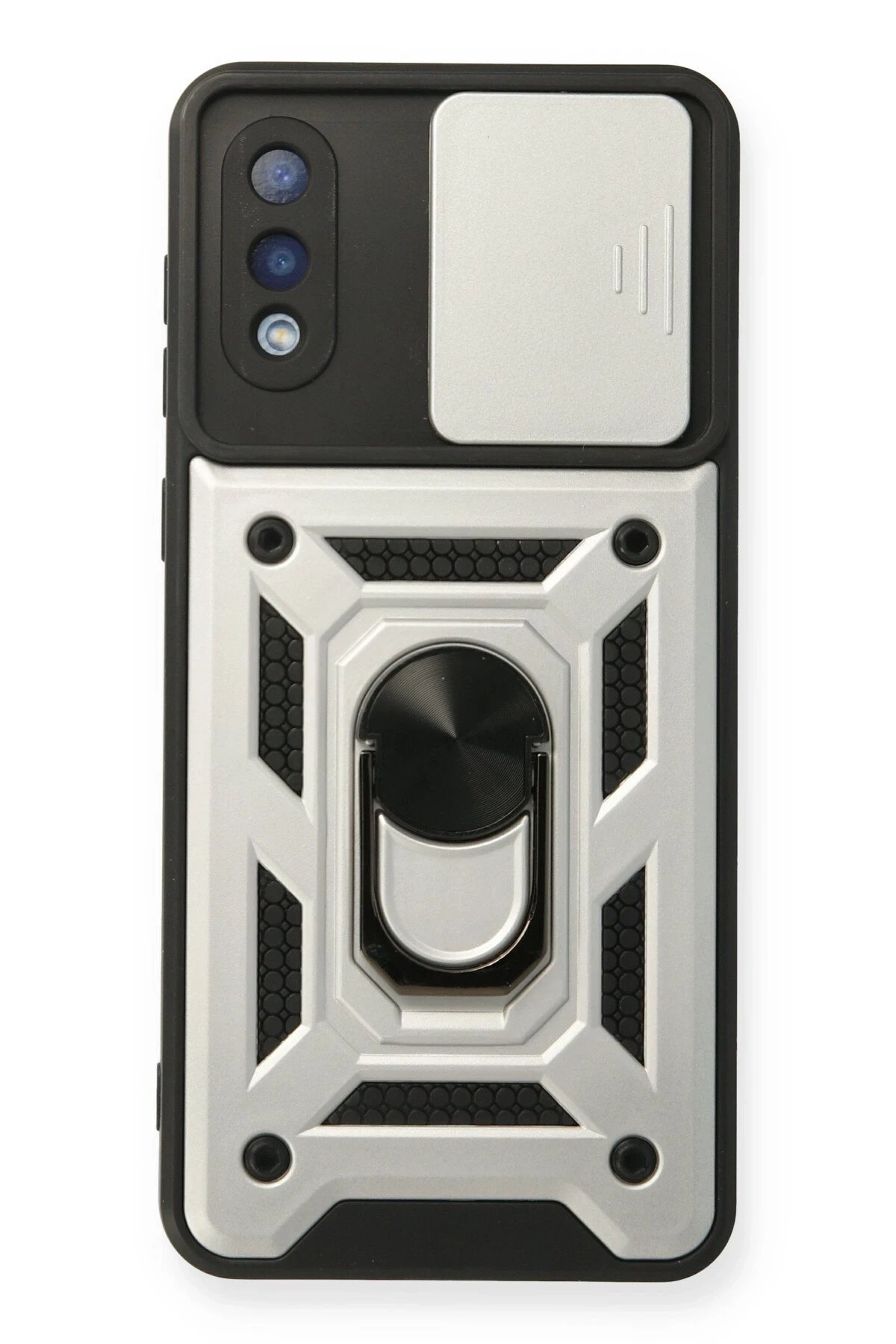 Samsung Galaxy A02 Kılıf Pars Lens Yüzüklü Silikon – Gümüş-(5796)