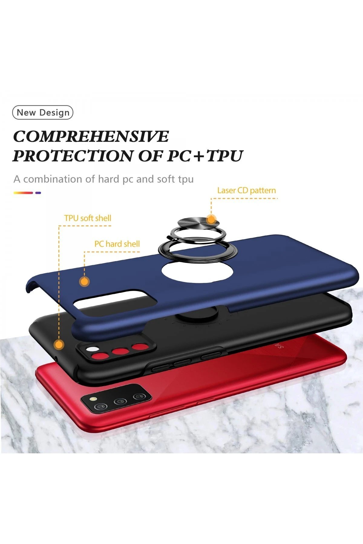 Samsung Galaxy A02S Kılıf Elit Yüzüklü Kapak – Lacivert-(5796)