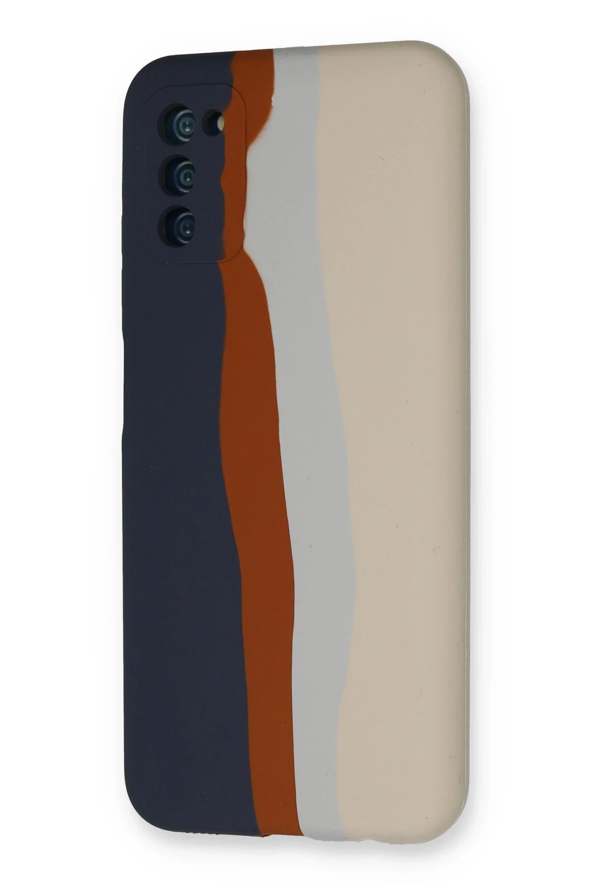 Samsung Galaxy A03S Kılıf Ebruli Lansman Silikon – Lacivert-Krem-(5796)