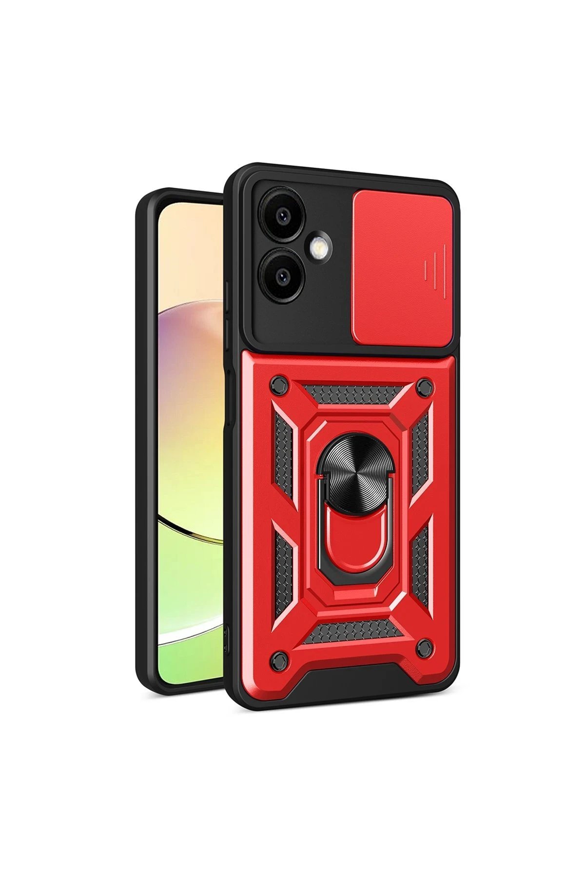Samsung Galaxy A06 Kılıf Pars Lens Yüzüklü Silikon – Kırmızı-(5796)