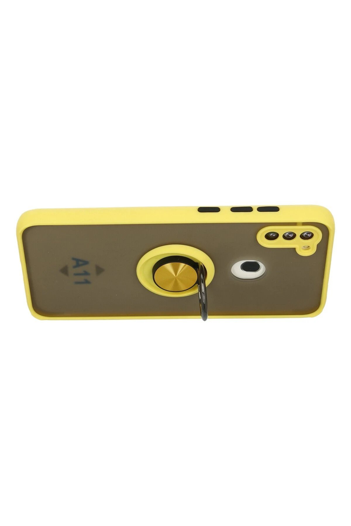 Samsung Galaxy A11 Kılıf Montreal Yüzüklü Silikon Kapak – Sarı-(5796)