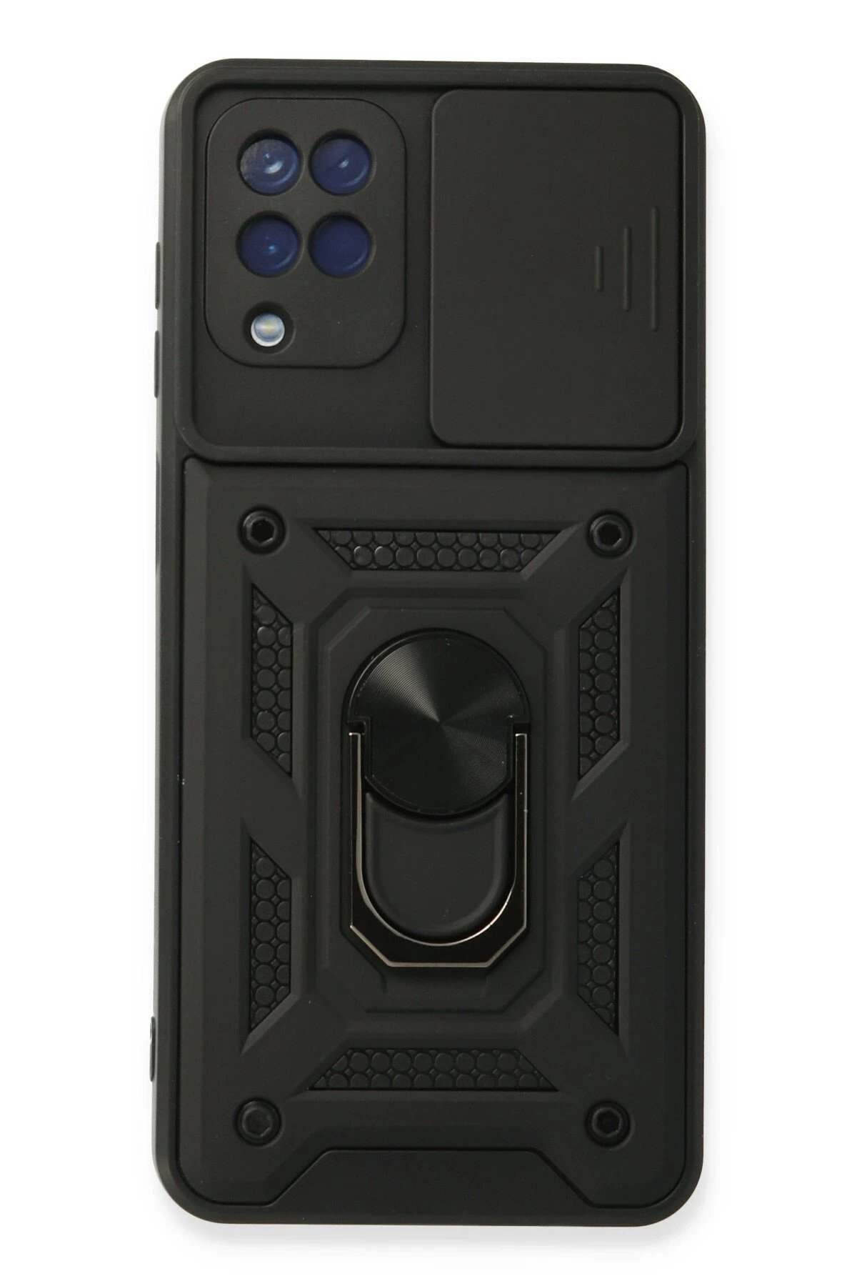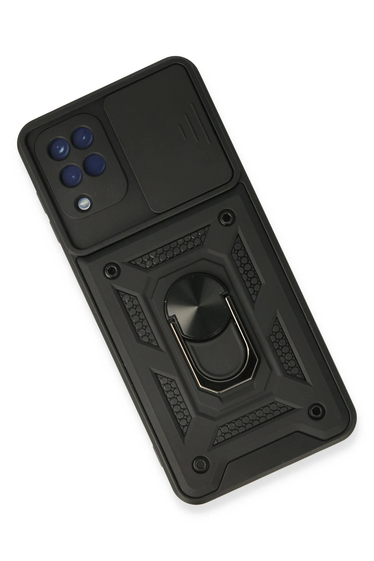 Samsung Galaxy A22 Kılıf Pars Lens Yüzüklü Silikon – Siyah-(5796)
