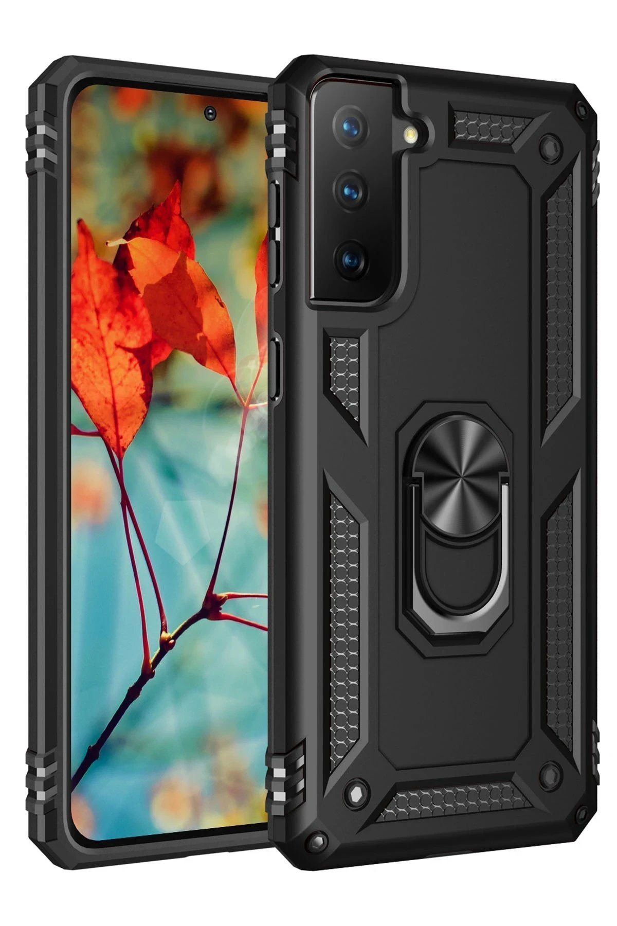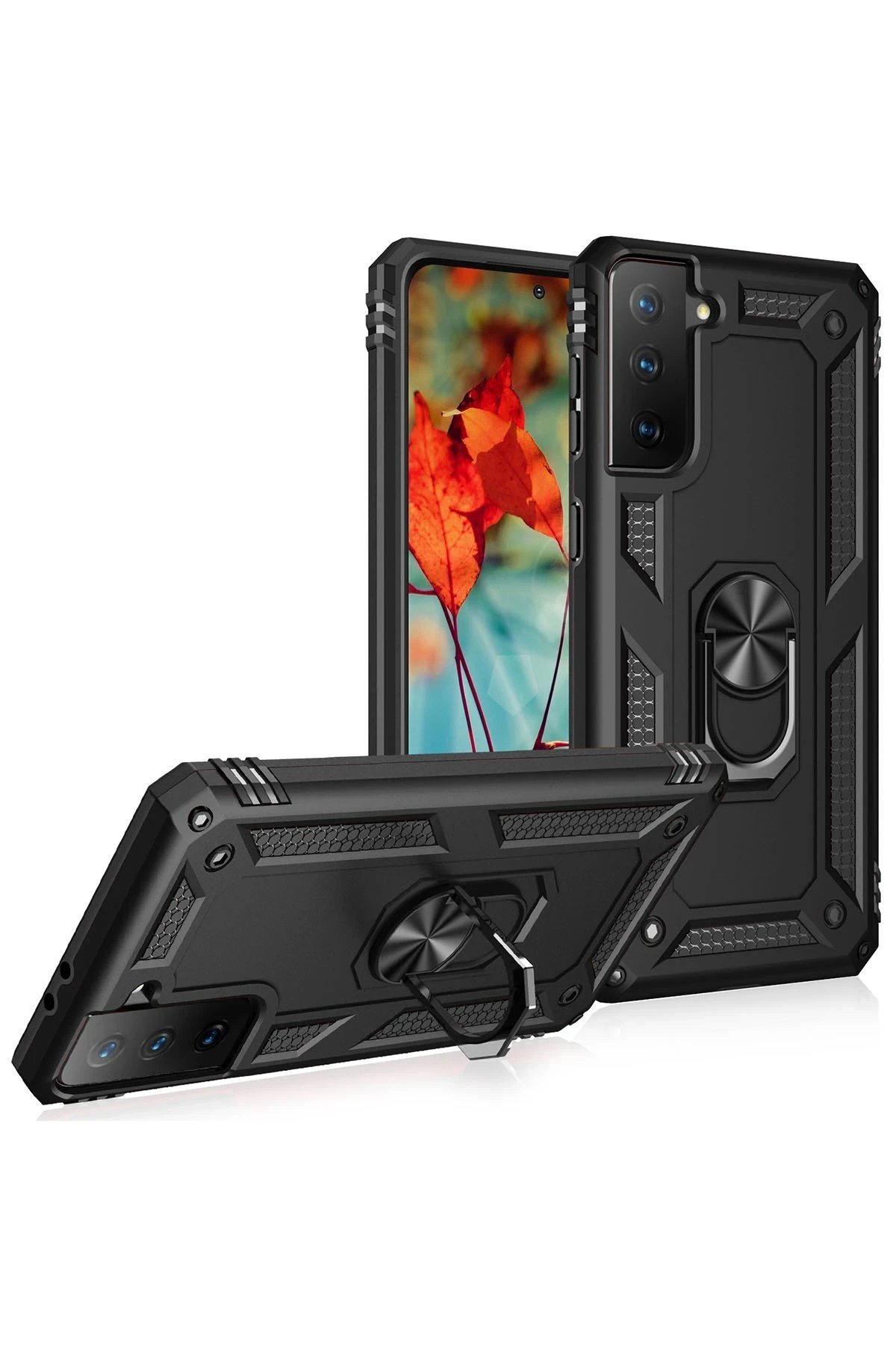 Samsung Galaxy S21 Plus Kılıf Sofya Yüzüklü Silikon Kapak – Siyah-(5796)