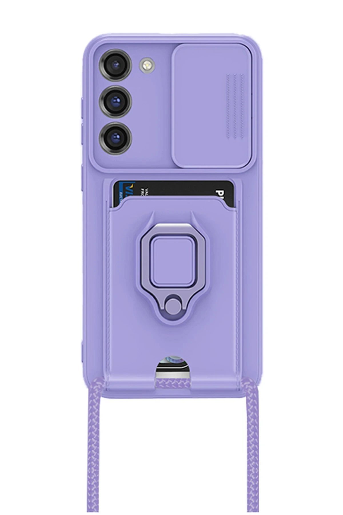 Samsung Galaxy S23 Plus Kılıf Zuma Kartvizitli Yüzüklü Silikon – Lila-(5796)