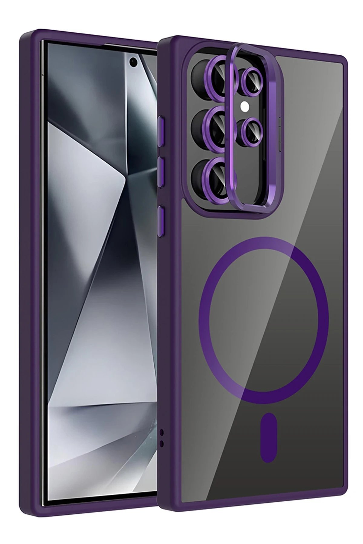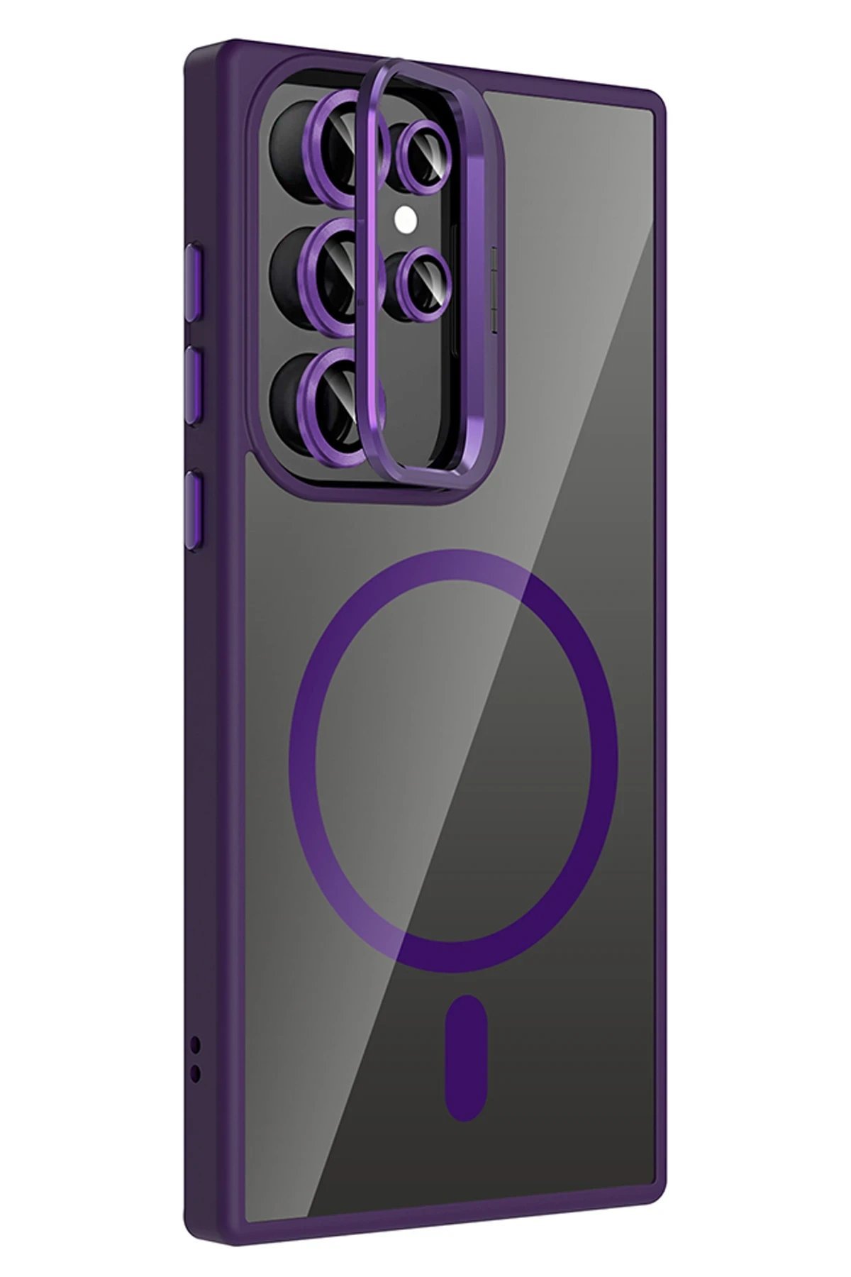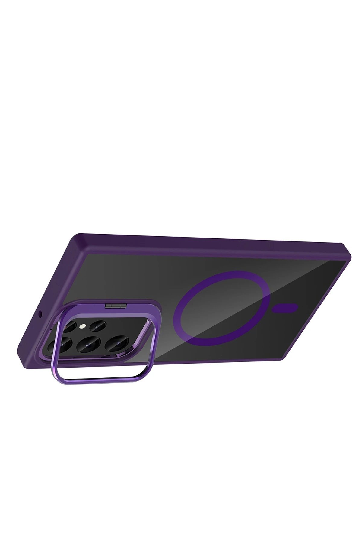 Samsung Galaxy S23 Ultra Remim Lensli Magsafe Standlı Kapak – Derin Mor-(5796)