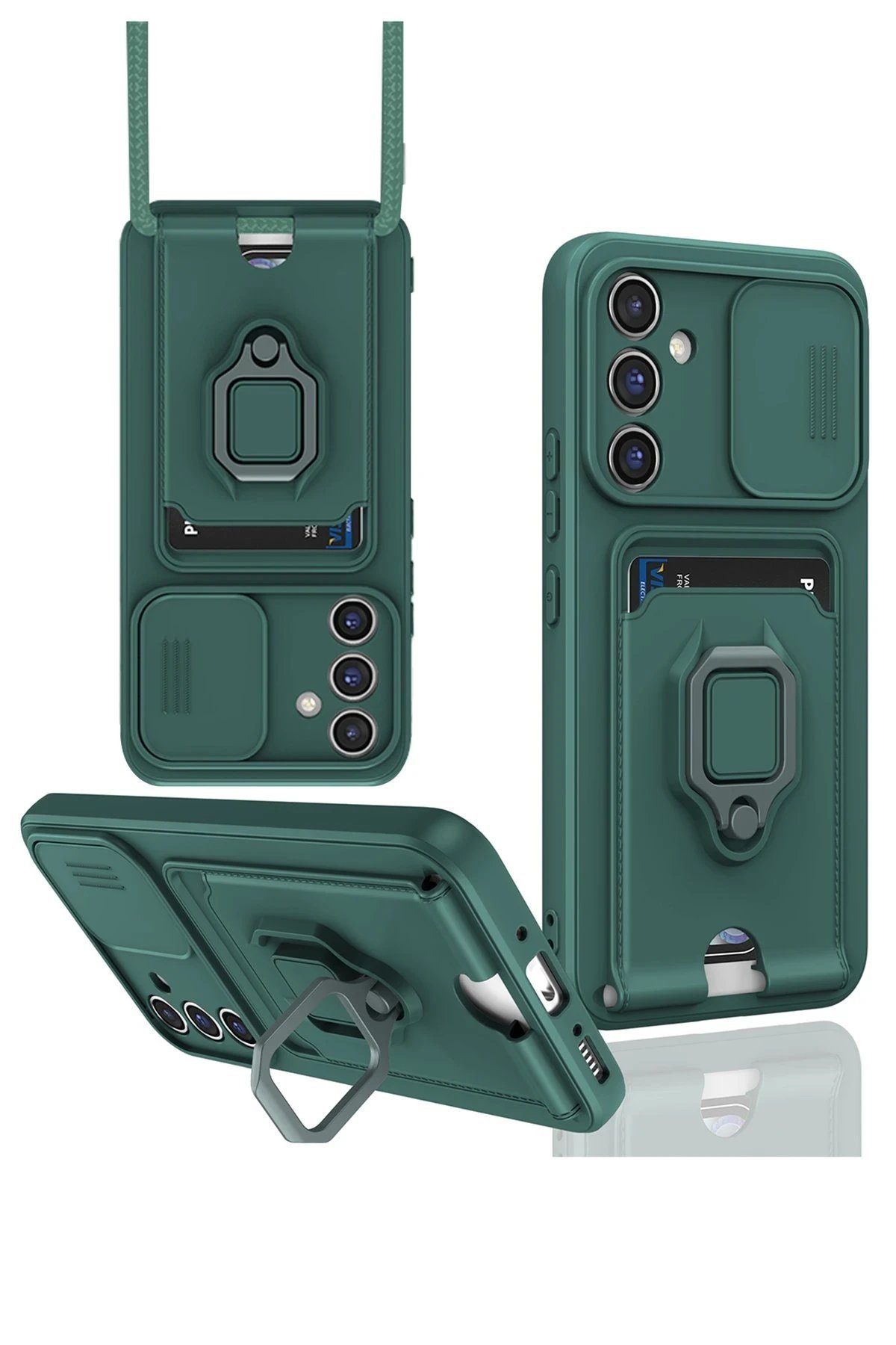 Samsung Galaxy S24 FE Kılıf Zuma Kartvizitli Yüzüklü Silikon – Yeşil-(5796)