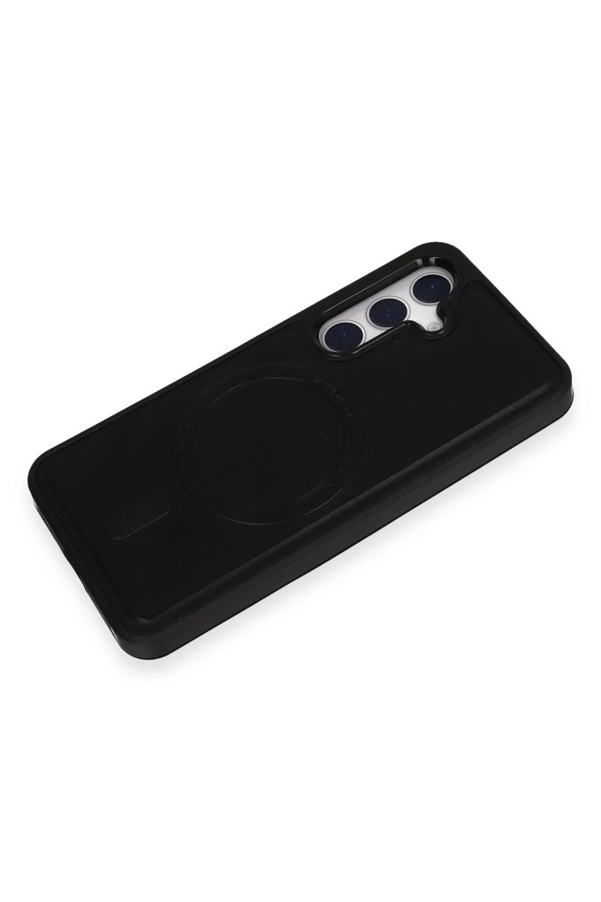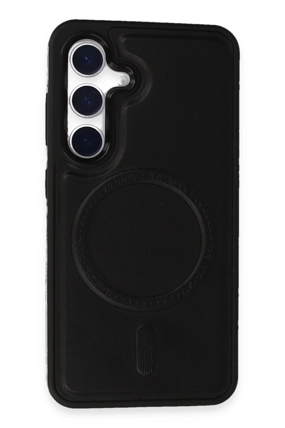Samsung Galaxy S24 Kılıf Ozzi Magsafe Deri Kapak – Siyah-(5796)