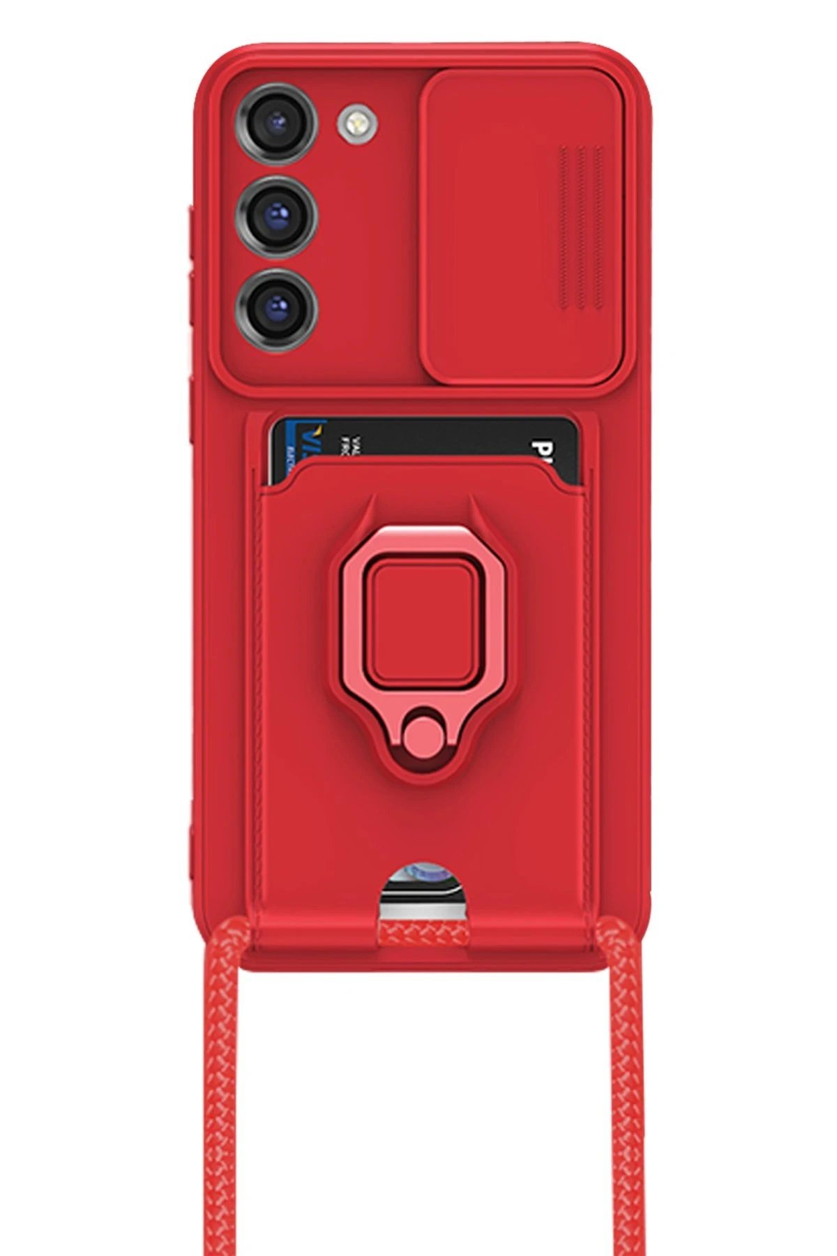 Samsung Galaxy S24 Plus Kılıf Zuma Kartvizitli Yüzüklü Silikon – Kırmızı-(5796)