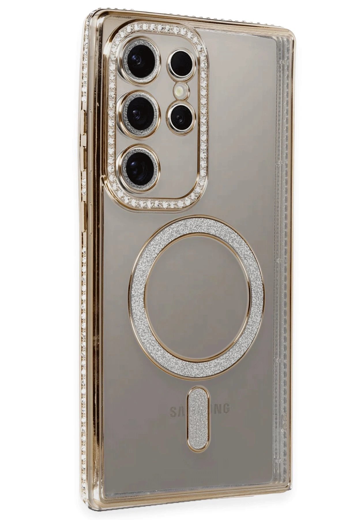 Samsung Galaxy S24 Ultra Kılıf Joke Simli Magneticsafe Kılıf – Gold-(5796)