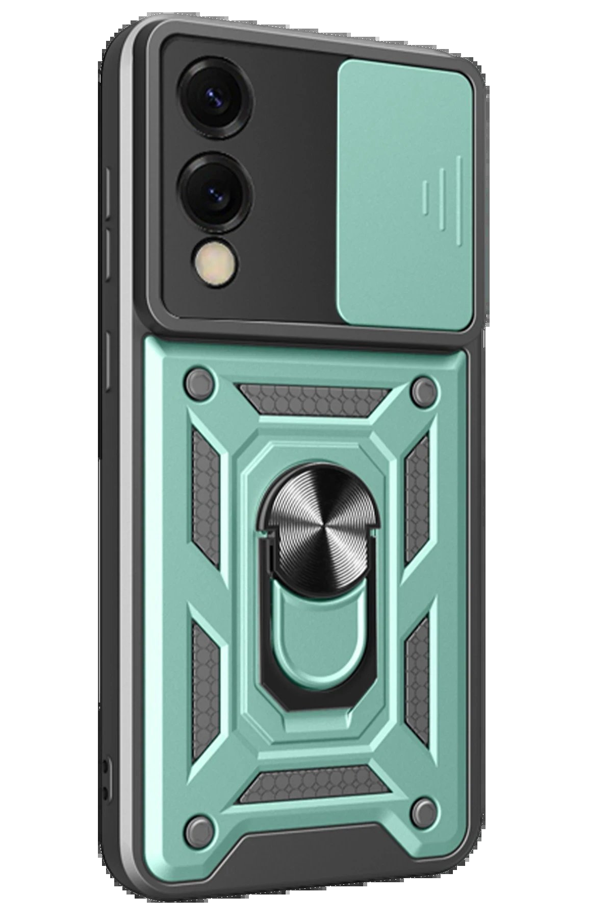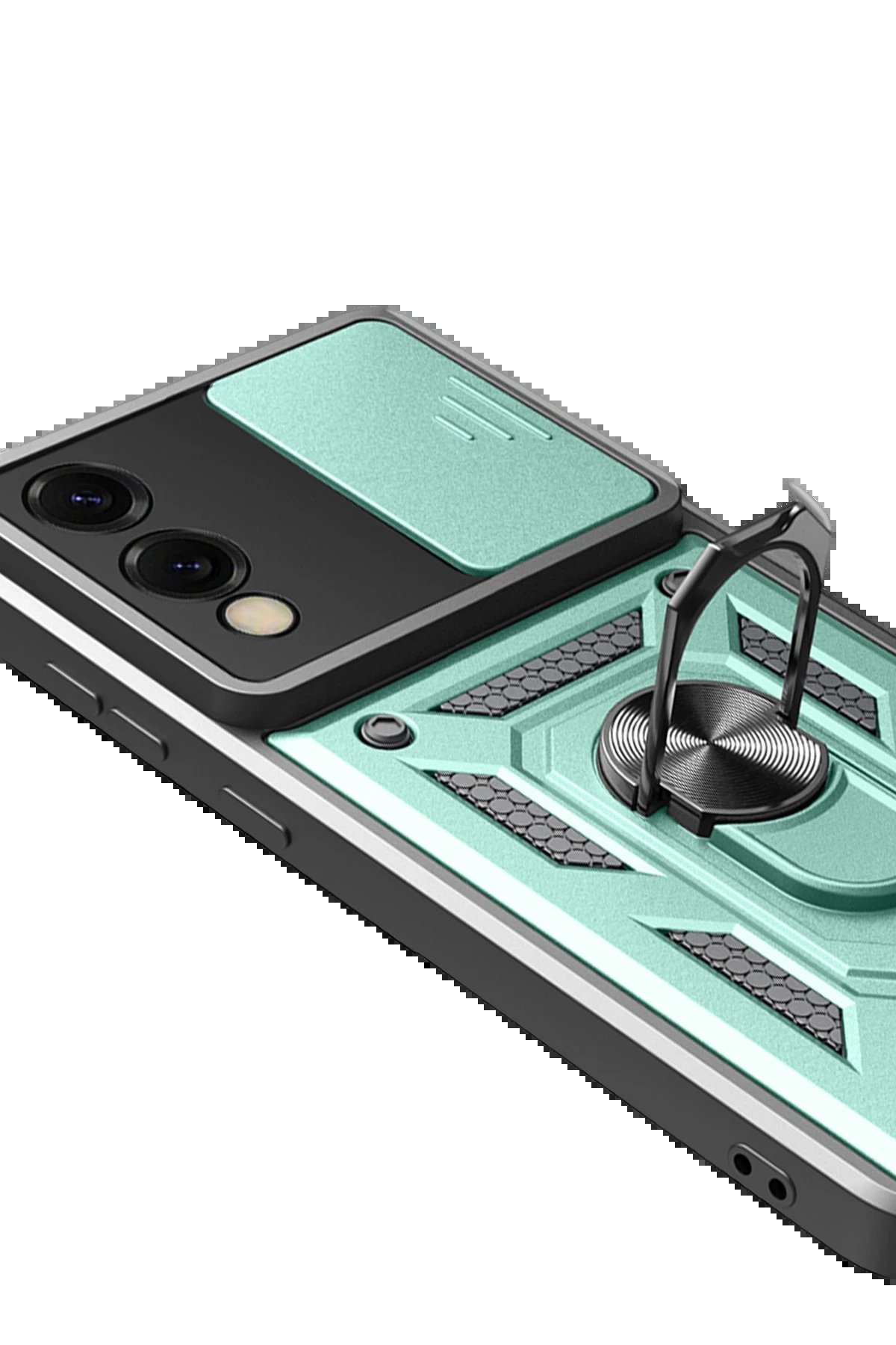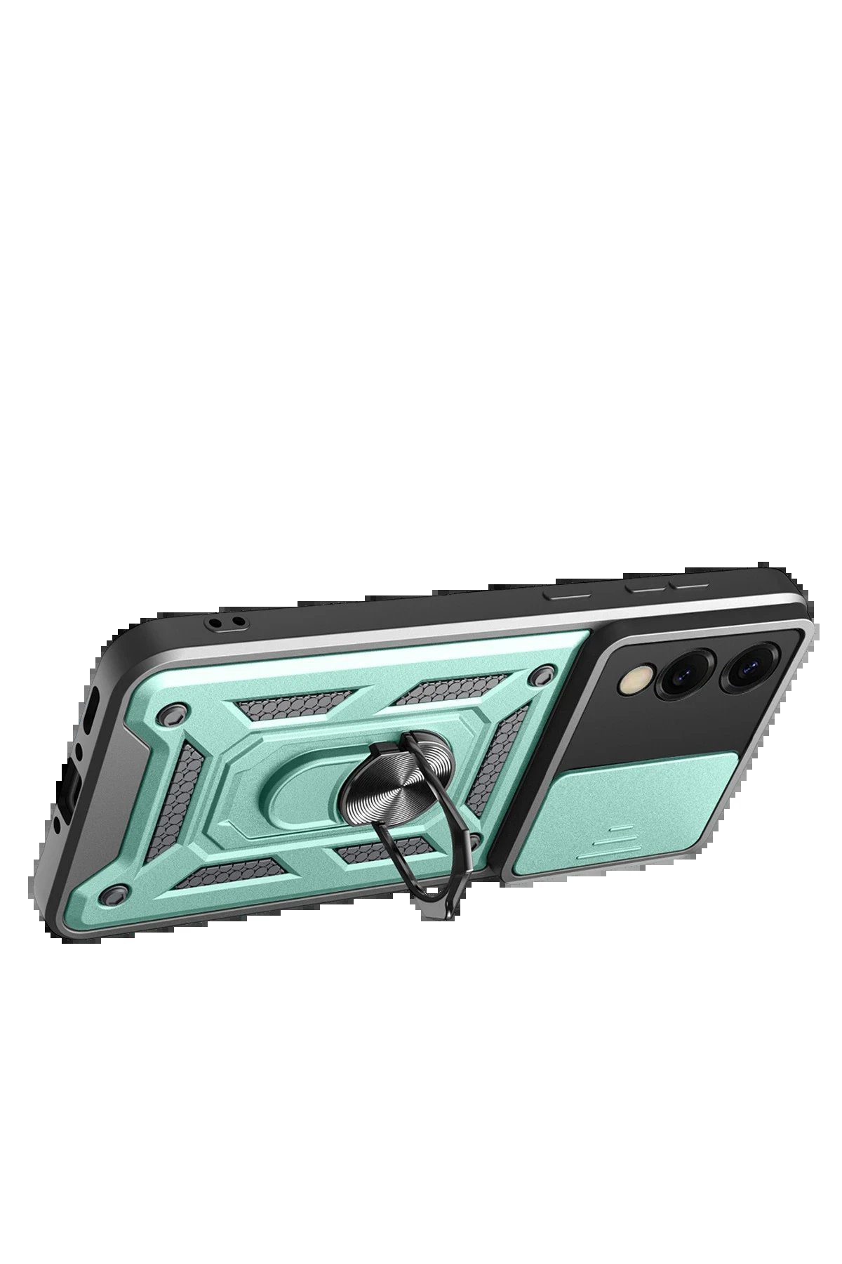Kılıfın arka kısmında yer alan entegre metal halka hem tutucu hem de stand olarak işlev görür. Eller serbest video izleme, içerik görüntüleme ya da masaüstü kullanımı için idealdir.