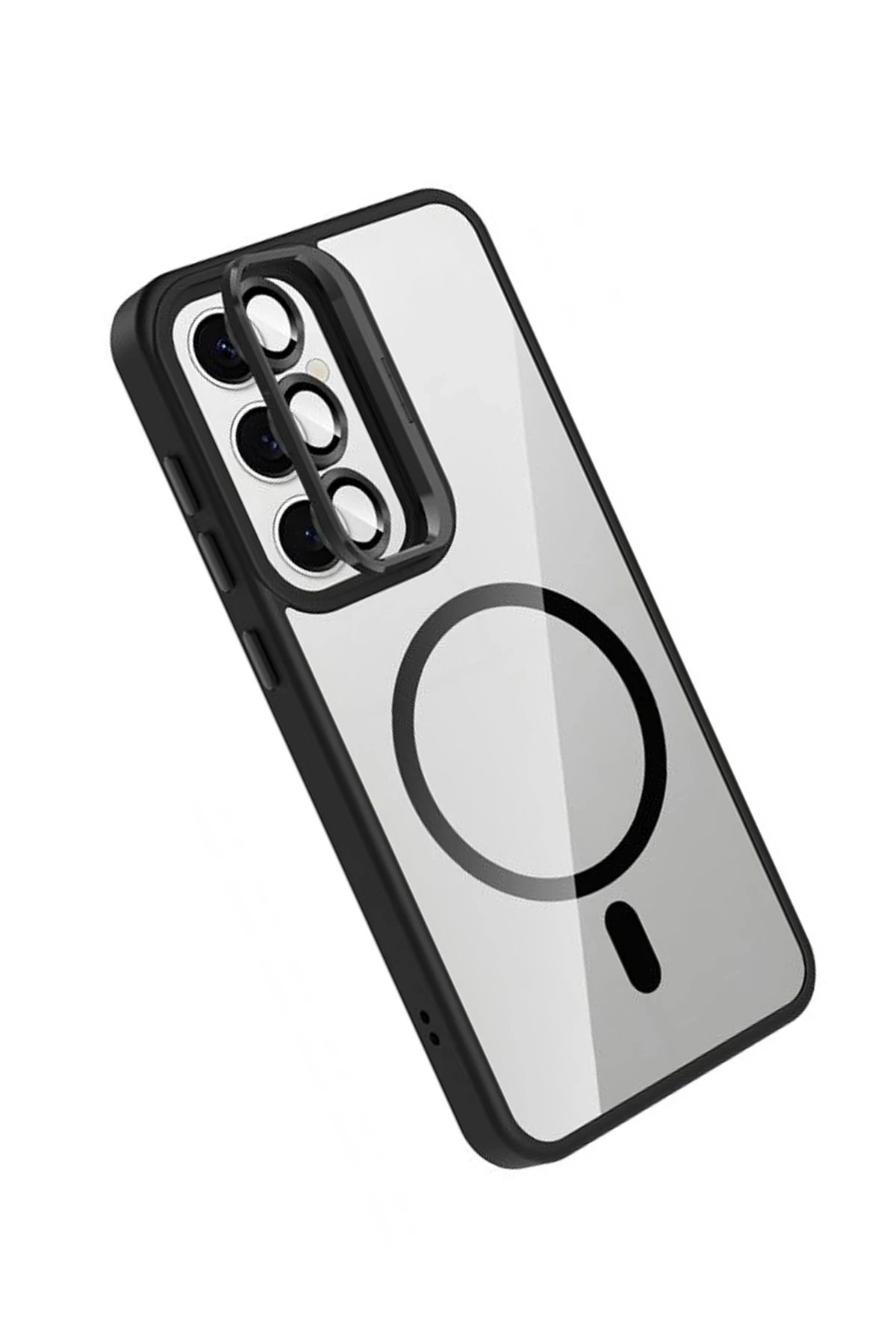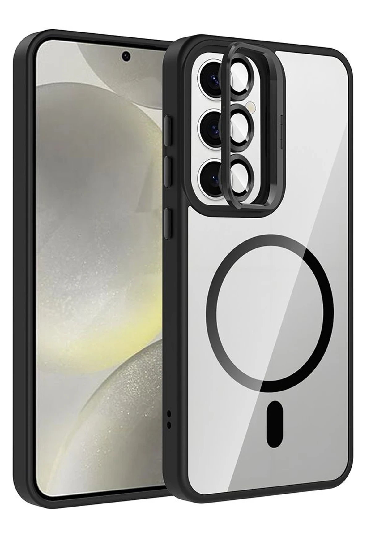 Samsung Galaxy S25 Remim Lensli Magsafe Standlı Kapak - Siyah-(5796)