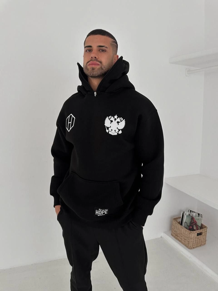 Samuray Ninja Çift Kapşonlu ZIP Fermuarlı Kanguru Çepli Tam Fermuarlı Hoodie ön Ve Arka Baskılı Maske Detaylı Swetshirt – Siyah