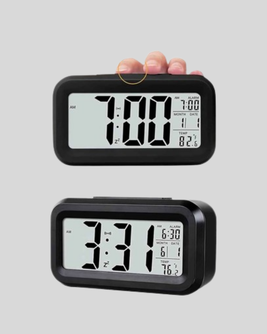 Modern yaşamın temposuna uyum sağlayan Sensörlü Dijital Masa Saati, hem şık görünümü hem de çok yönlü işlevleriyle dikkat çeker.Geniş dijital ekranı, zamanı net bir şekilde okumanızı sağlar; özellikle karanlık ortamlarda bile görünürlük sunar.Otomatik ışık sensörü sayesinde ekran, ortam ışığına göre aydınlanır ve 6 saniye sonra kendiliğinden kapanarak enerji tasarrufu sağlar.Yalnızca saati göstermekle kalmayan bu cihaz, alarm fonksiyonuyla sabahları zamanında uyanmanıza yardımcı olur.Ayrıca tarih ve ortam sıcaklığı göstergesi ile günlük yaşamınızı daha düzenli hale getirir.Sessiz çalışma sistemi, uyurken rahatsız edici tıkırtıları ortadan kaldırır.4,3 x 15,1 x 7,7 cm boyutlarıyla kompakt bir yapıya sahiptir ve masa, komodin veya ofis masasında şık bir duruş sergiler.3 adet AA pil ile çalışır (piller dahil değildir).Hem ev hem de ofis kullanımına uygun olan bu dijital masa saati, işlevsellik ve estetiği bir arada sunar.