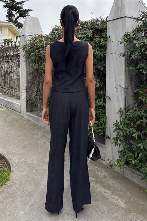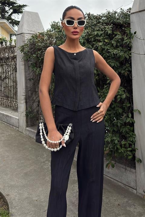 Sıfır Kollu Bluz Batik Desenli Pantolon İkili Takım 10181-08