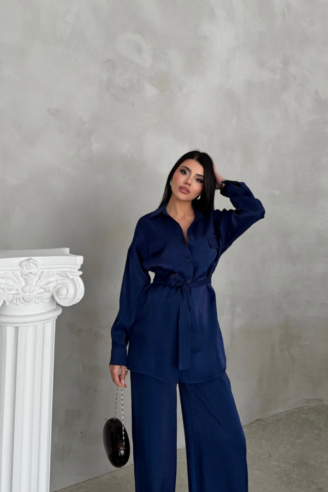 SİMLİ KUMAŞ SALAŞ PANTOLON – GÖMLEK TAKIM – Lacivert
