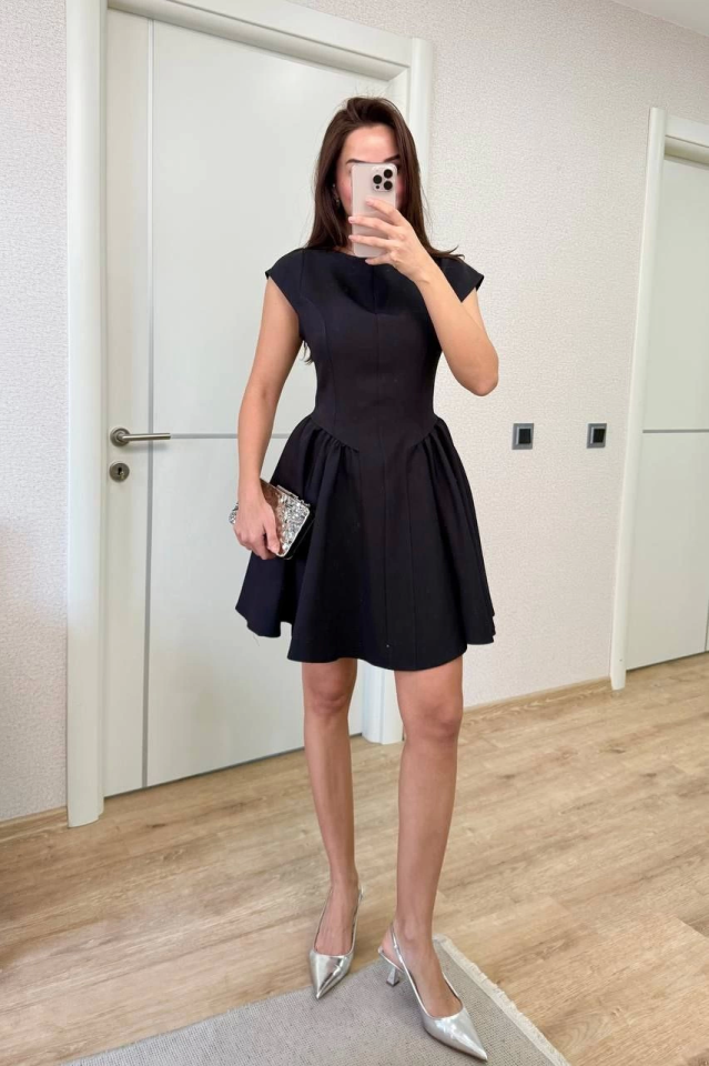 Sırt Dekolteli Çan Detaylı Mini Elbise – Siyah