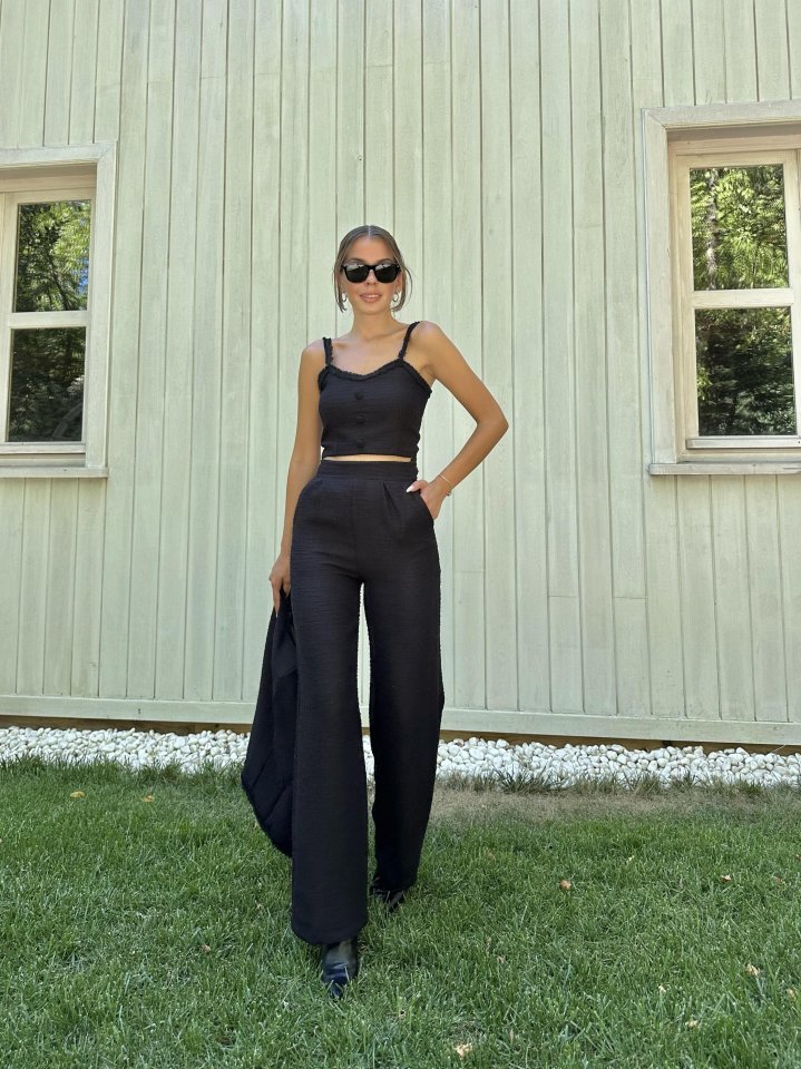 Siyah Askılı Büstiyer Ceket Ve Pantolon Takım