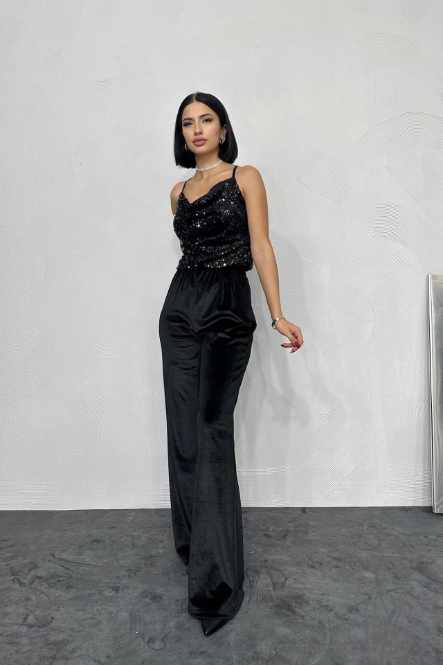 Siyah Askılı Degaje Bluz