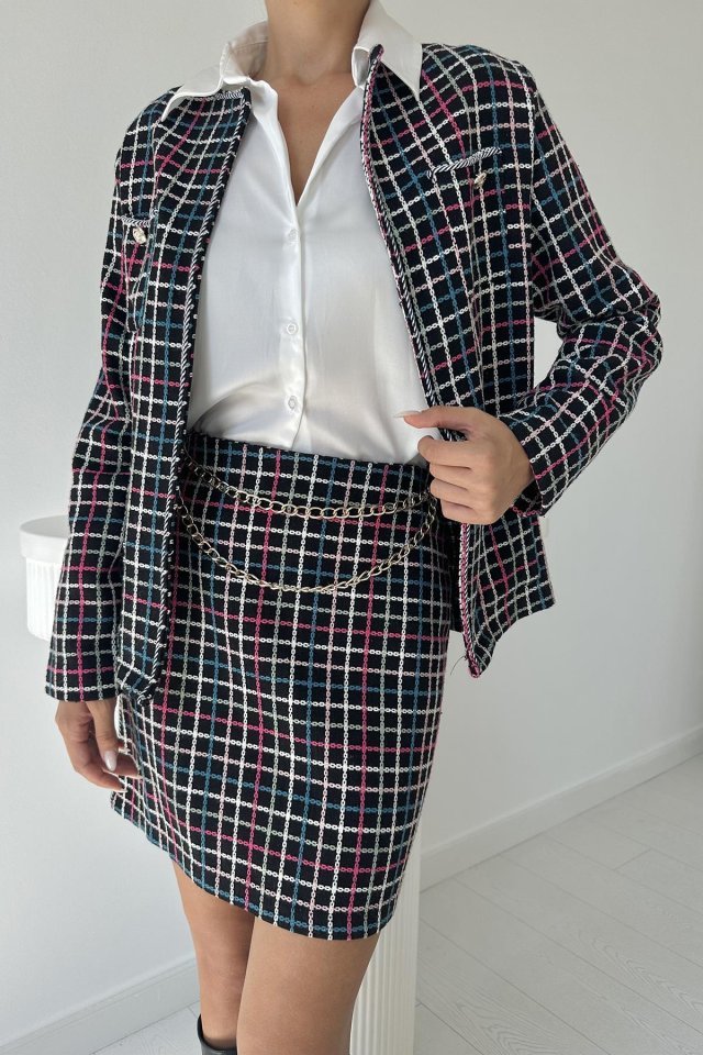 Siyah Önü Açık Ceket Ve Eteği Zincirli Takım