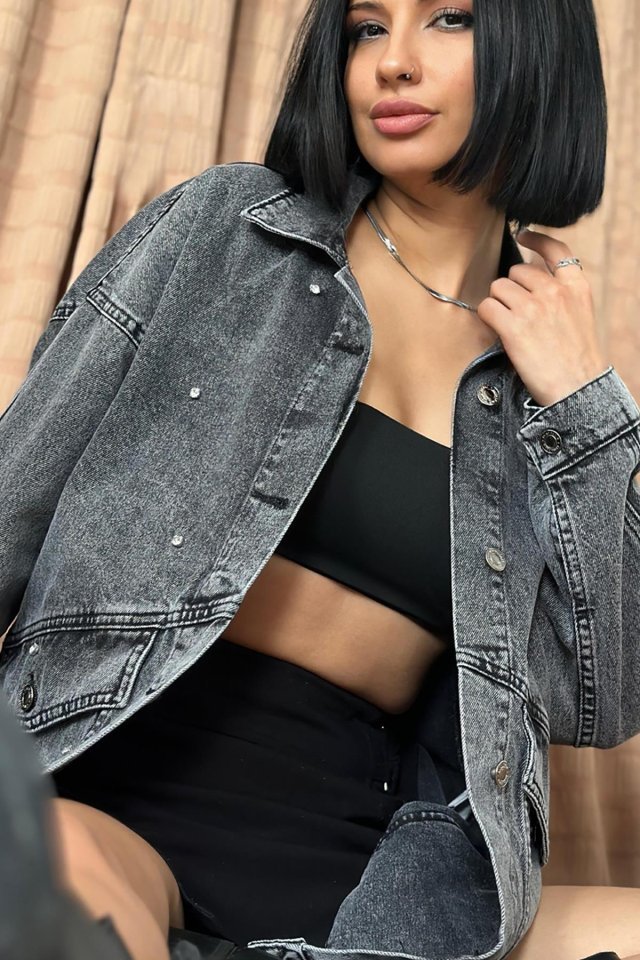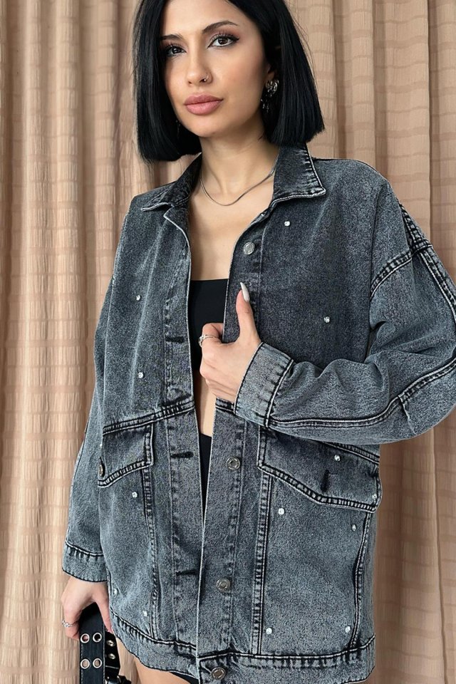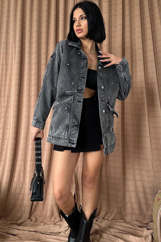 Siyah Taşlı Kot Ceket
