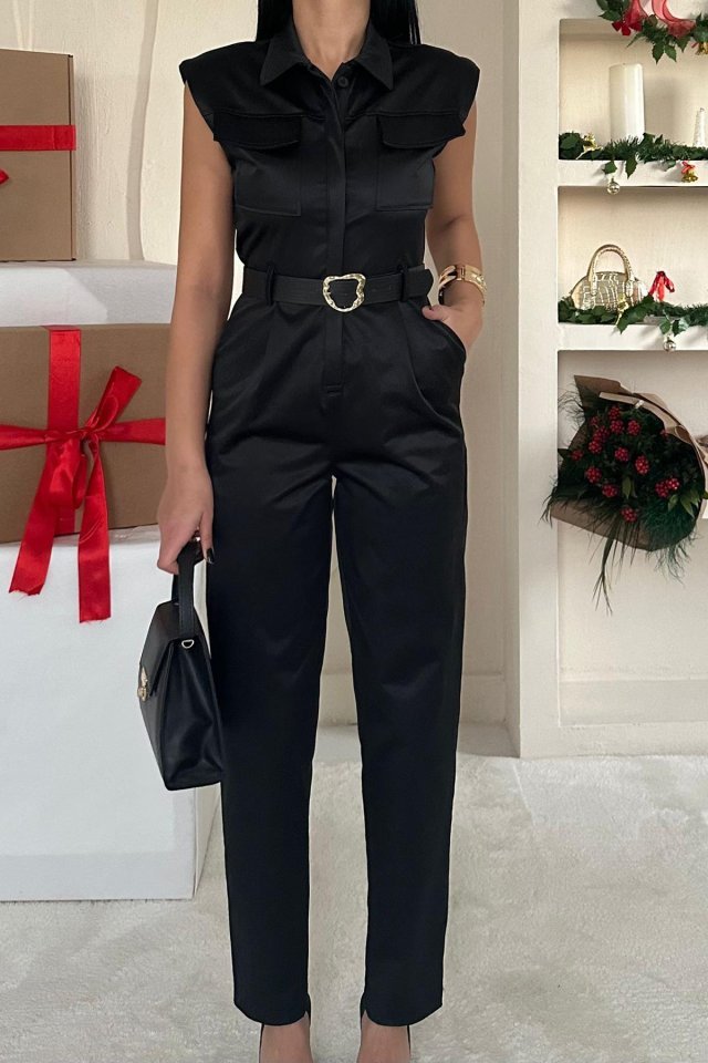 Siyah Vatkalı Kemerli Tulum