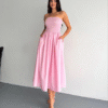 Straplez Pileli Elbise – Açık Mavi