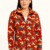 Tam Fermuarlı Desenli Polar Sweat – Siyah Multicolor Figür Desen Yakalı, Uzun Kollu, Oversize Rahat Kalıp – Kiremit