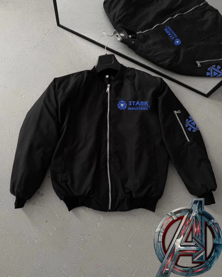 Tam Kalıp Uzun Kol Baskılı Bomber Ceket – Siyah