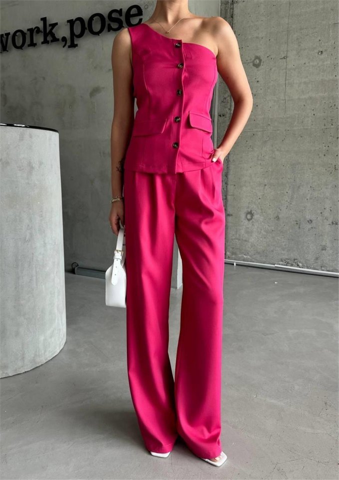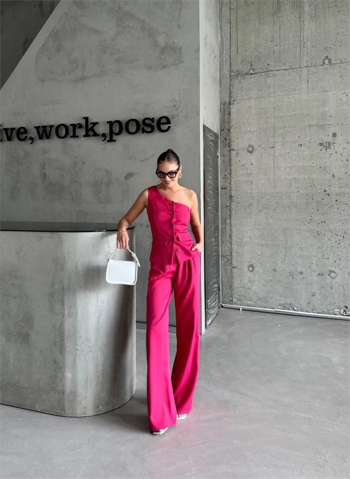 TEK KOL YELEK – PANTOLON TAKIM ATLAS – Fuşya