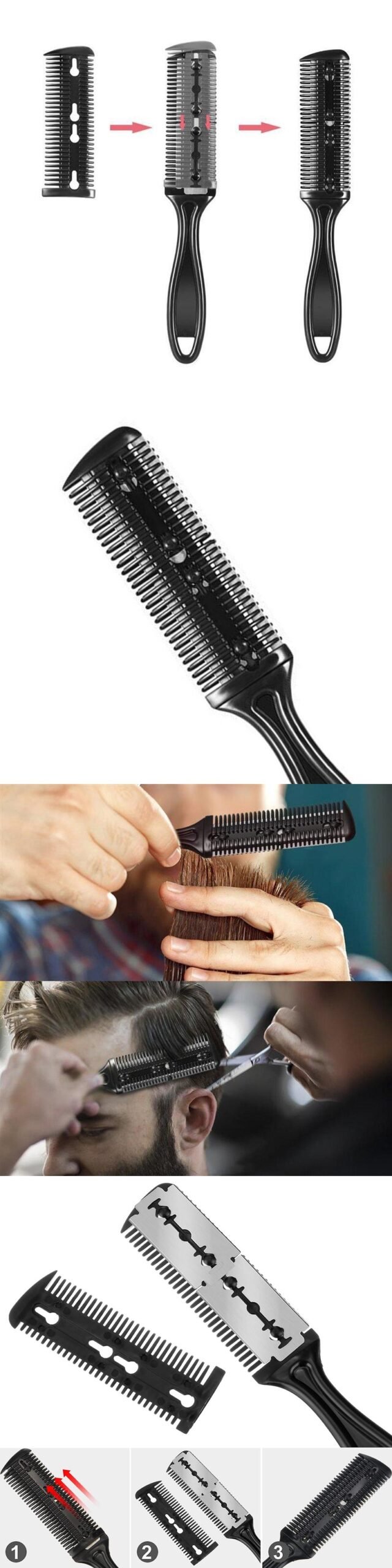 ÇİFT FONKSİYONLU SAÇ KESME TARAKLARI: Çift fonksiyonlu saç/sakal  tarakları, saç/sakal ı bir tarafta tarar ve alır, diğer tarafta ise keser.