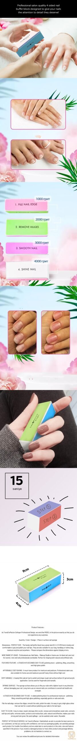 15 SN’DE 4 AŞAMALI KOLAY KULLANIM : Profesyonel manikür için 4 taraflı parlatma bloğu – cilalama, törpüleme, düzleştirme ve çok parlak cilalama, özellikle tırnaklara ve tırnaklara karşı hassastır.