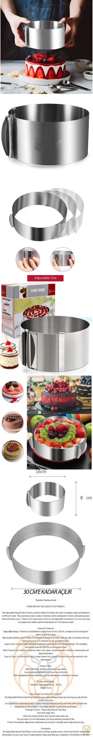 Paket İçeriği: 1 adet Ayarlanabilir Yuvarlak Pasta Çemberi.