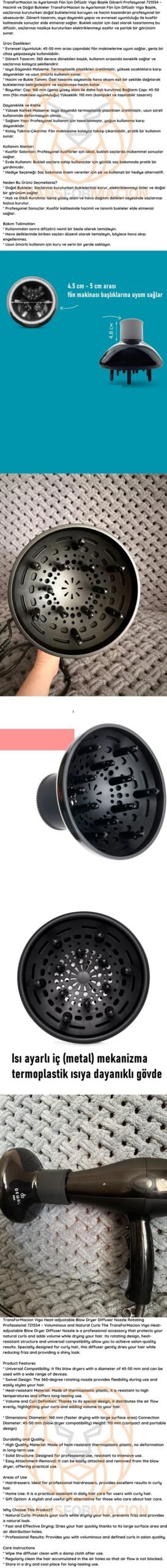 Turk Isı Ayarlamalı Fön Için Difüzör Vigo Başlık Dönerli Profesyonel