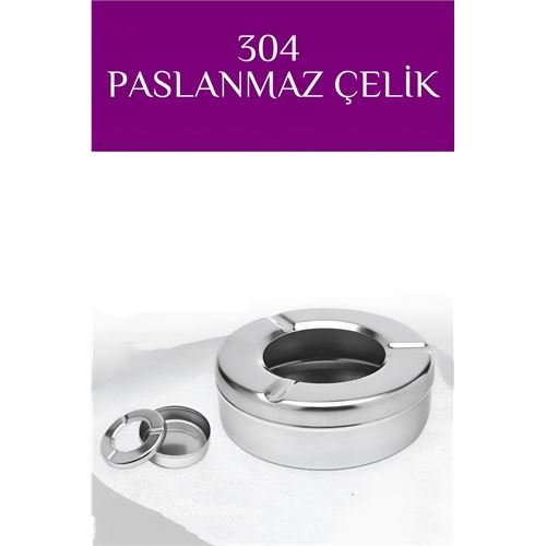 Turk Kapaklı Paslanmaz Yuvarlak Küllük – Kapaklı 304 Çelik Kül Tablası – Kafe Küllüğü Restoran Küllüğü