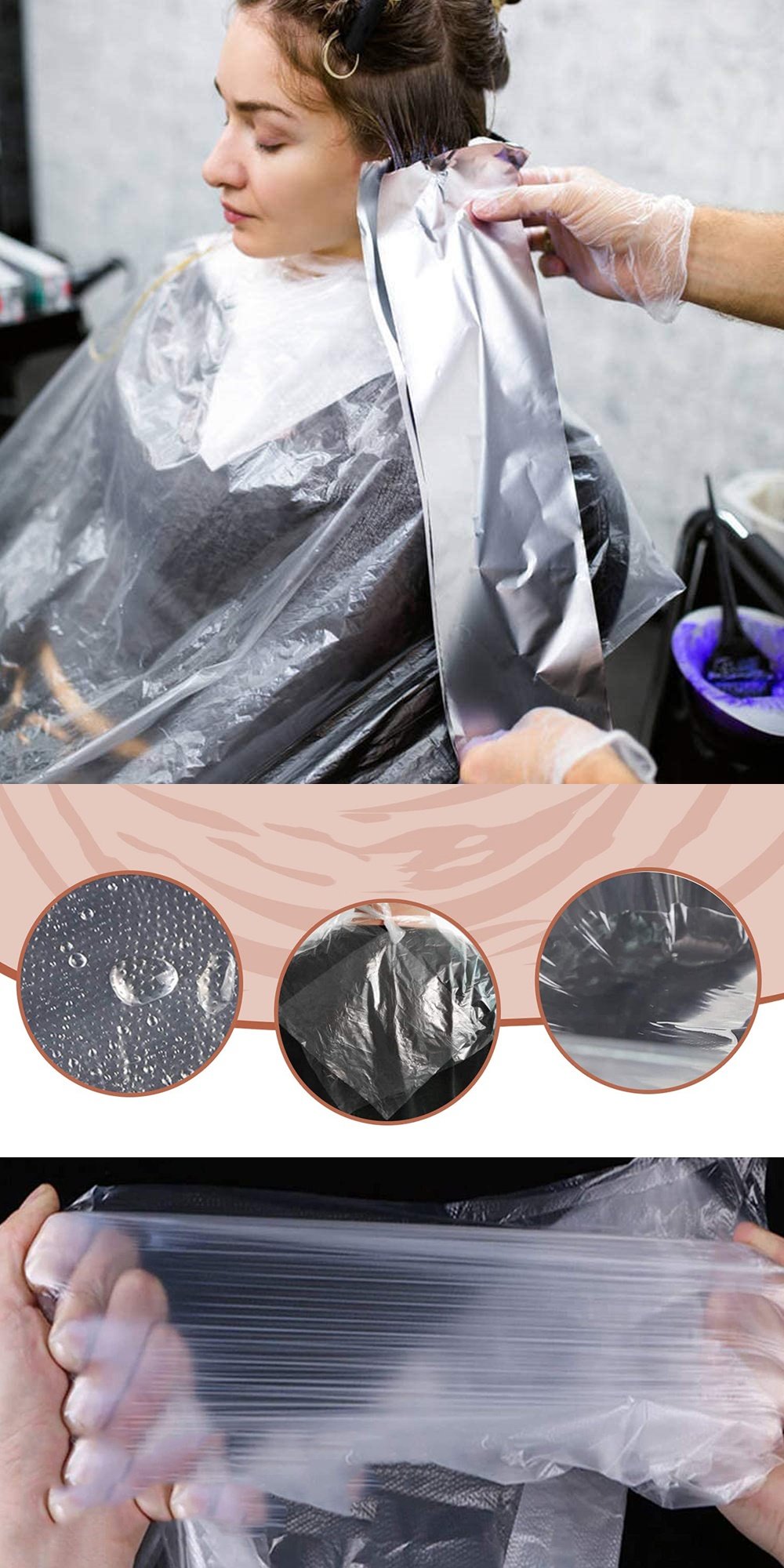 HAFİF, SU GEÇİRMEZ, YIRTILMAYA DAYANIKLI TASARIM – Bu pelerinler hafif plastikten yapılmış olsalar da dayanıklıdırlar ve düzenli kullanımda yırtılmazlar. Su geçirmez tasarımı, saç yıkarken suyu giysilerden uzak tutacaktır.
