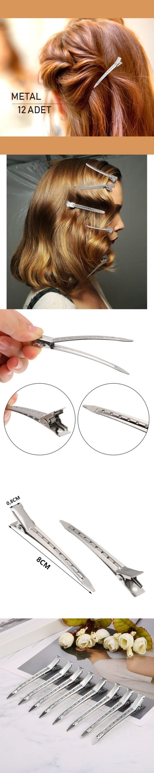 KLİPS TASARIMI : Benzersiz dışbükey tasarım, saçınızı kaymadan güvenli bir şekilde tutmak için iyidir; Ve alt kısımdaki metal kısım ince ama güçlüdür. Bu saç tokalarının dişleri yoktur, saçınızı çizmeden iyi çalışabilirler, bukleler oluşturmak veya şekillendirmek için uygundurlar.