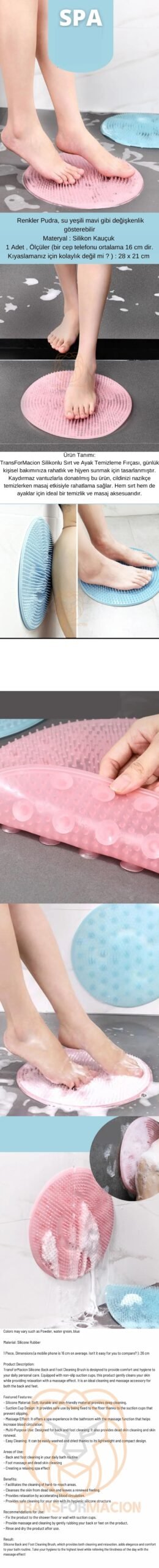 Hem temizliğinizi hem de rahatlamanızı sağlayan Silikonlu Sırt ve Ayak Temizleme Fırçası, banyo rutininize şıklık ve konfor katar. Masaj etkisiyle günün yorgunluğunu atarken hijyeninizi en üst seviyeye taşıyın!