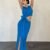 Turkuaz Kuşaklı Crop Ve Etek Takım
