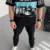 Unisex Baskılı Yarım Fermuarlı T-Shirt – Siyah