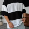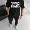 Unisex Bisiklet Yaka Baskılı Oversize T-Shirt – Lacivert