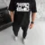 Unisex Bisiklet Yaka Katlanan Baskılı T-Shirt – Siyah